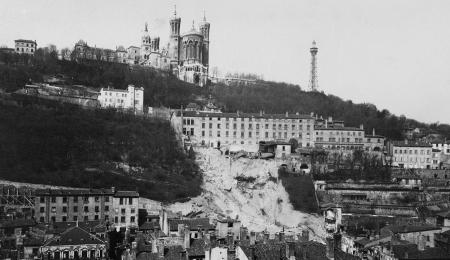 Dans la nuit du 12 au 13 novembre 1930, peu après minuit, un glissement de terrain emporte une partie de la colline de Fourvière et détruit plusieurs maisons de la rue Tramassac. Les pompiers et les agents de police procèdent à l’évacuation du quartier quand une seconde coulée de terre vient aggraver les premiers ravages. Comme nombre des habitants des immeubles anéantis, 4 policiers et 19 pompiers ont disparu, ensevelis sous les décombres.