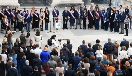 Votre communion, aujourd’hui, avec Samuel Paty et Dominique Bernard, est celle d’une même fraternité au service de la République.