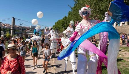 Sur le site des berges de la Guillotière, 30 000 personnes sont venues profiter des guinguettes, de spectacles, de nombreuses animations et de la truculente Mâchecroute. Réinventée par l’artiste Jacques Rival, la légende populaire lyonnaise est apparue sous les traits d’une créature colorée et espiègle. Point d’orgue du festival, la parade a réuni un public familial aux 9 couleurs des arrondissements, déferlant sur les quais du Rhône au son des batucadas et des fanfares.