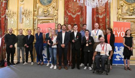 La médaille de la Ville de Lyon est venue s'ajouter à la longue liste des trophées déjà récoltés par ces athlètes exceptionnels. Elle a été remise par Grégory Doucet, Maire de Lyon, Julie Nublat-Faure, Adjointe aux sports et Florence Delaunay (Droits et égalités).