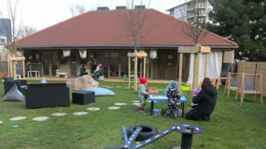 La crèche « Souris en Herbe » dans le parc Mandela (3e) est la première crèche de plein-air de Lyon et de France.