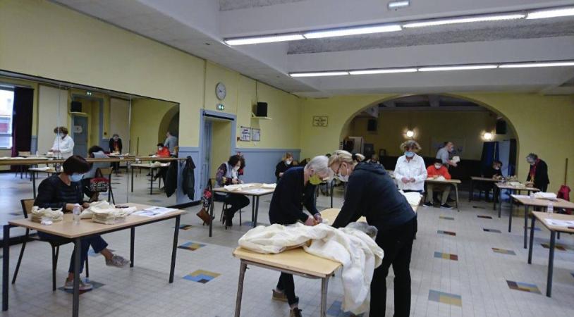 Une trentaine de centres sociaux, MJC, clubs sportifs et autres comités des fêtes ont répondu spontanément à l’appel lancé par la Ville de Lyon lors de deux livraisons successives de 100 000 puis 160 000 de ces masques lavables 10 fois. Au moins 600 personnes se sont portées volontaires, selon les estimations, pour découper les bandes de masques, ajouter la barrette nasale et envelopper le tout dans un sachet avec la notice d’utilisation.