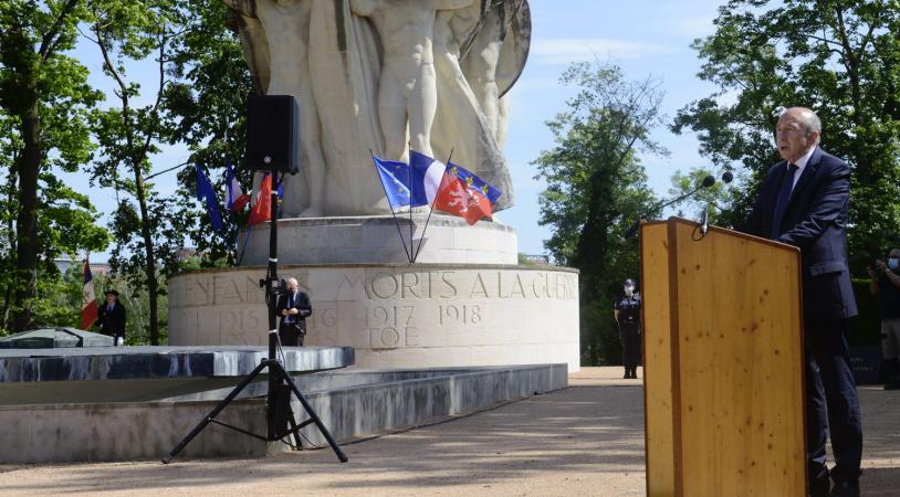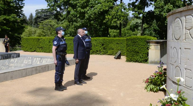 La Ville de Lyon préparait depuis quelques mois une célébration du 75° anniversaire de la capitulation sans conditions de l’Allemagne nazie, à la fois grave, belle et joyeuse, sur la place Bellecour, auprès du Veilleur de Pierre. La crise sanitaire actuelle en a décidé autrement, et nous a contraints à une cérémonie discrète, sans public, devant le Monument aux Morts, sur l’Île du Souvenir au Parc de la Tête d’Or.