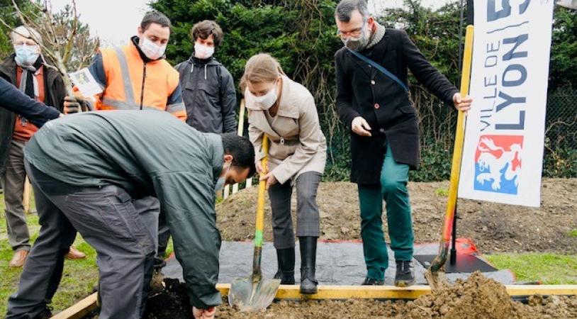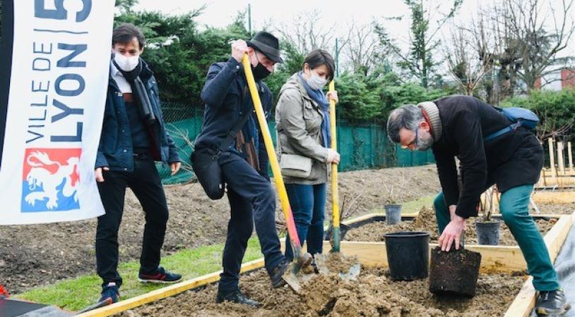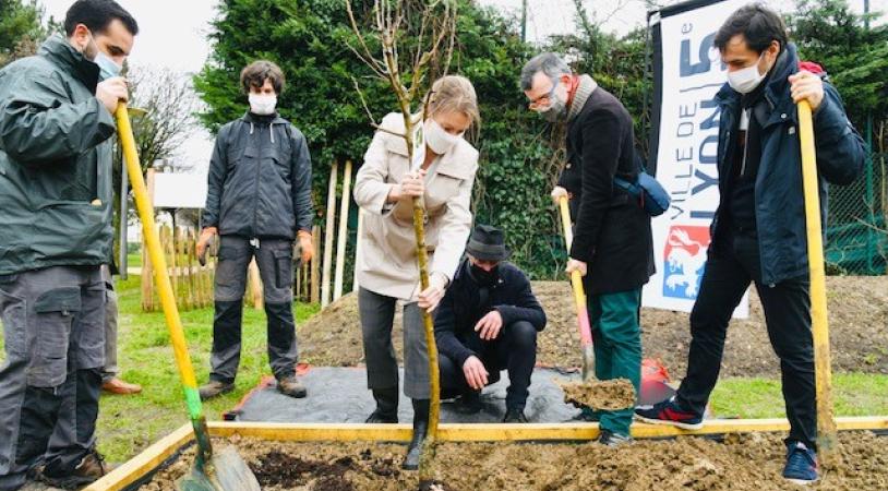 La maire du 5e arrondissement et l'actuel conseiller municipal délégué au Parc des Balmes planteront les premiers arbres du verger municipal du 5e arrondissement, situé au 130 rue Commandant Charcot, aux côtés du conseiller municipal délégué à l’Alimentation locale, l'adjointe à la Maire du 5e déléguée à l’Alimentation et aux Commerces et l'adjoint à la Maire du 5e, délégué aux Patrimoines, à la Nature en ville et à la Biodiversité.