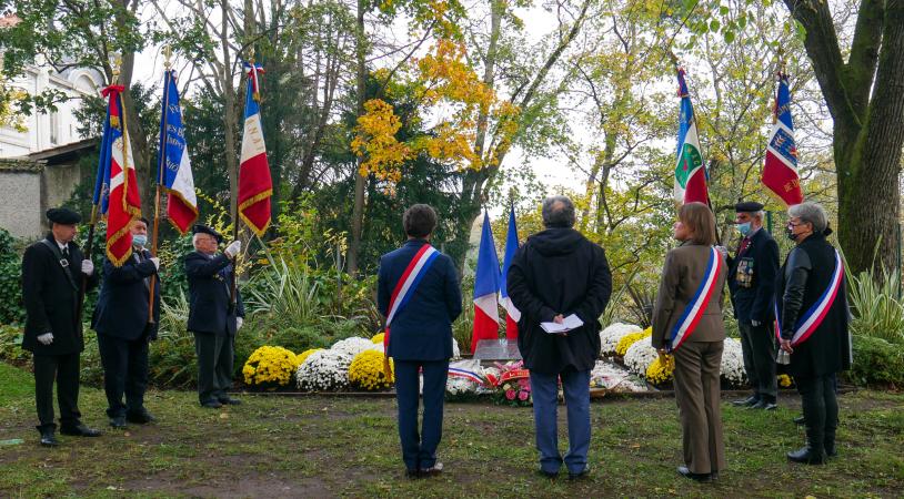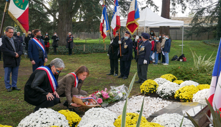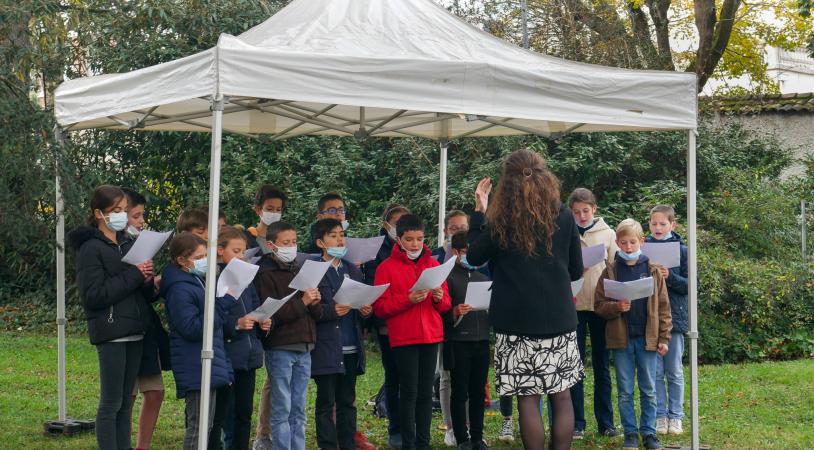 Le 5e arrondissement de Lyon commémore l’armistice de la Première Guerre mondiale en présence des Petits Chanteurs de Lyon dans le Parc de la Mairie.