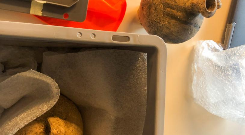 Le chantier a permis de mettre au jour une amphore en céramique complète et 2 balsamaires en verre très fragile, ainsi que des éléments funéraires proche de squelettes.
