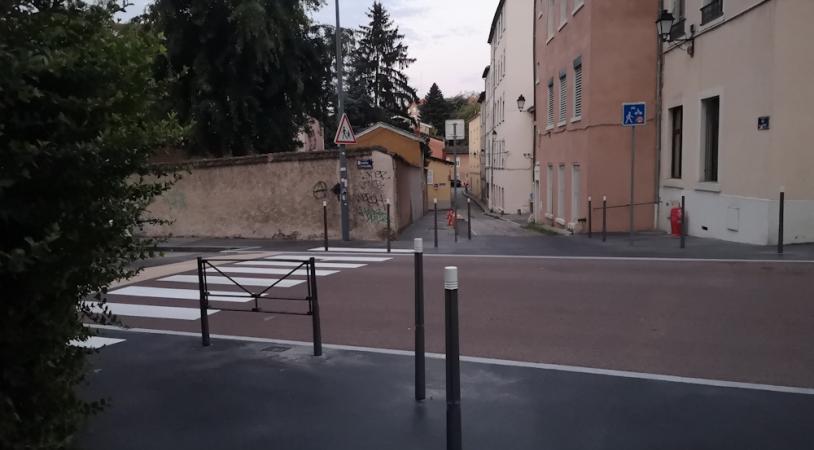 - La traversée de la montée de Choulans sera sécurisée par la création d’un plateau ralentisseur au niveau de la rue des Anges, rue très fréquentée dans le quartier notamment pour se rendre au marché. Des arbres seront plantés pour rendre le cheminement piéton plus agréable.