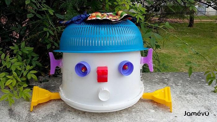 Exemple : bouchons de bouteilles, bidons, tuyaux ou gaines de bricolage,...et tous les objets de « caractère » qui inspirent. De nombreux matériaux complémentaires et matériaux recyclés seront aussi fournis par la Cie (objets en plastique et petits tissus).