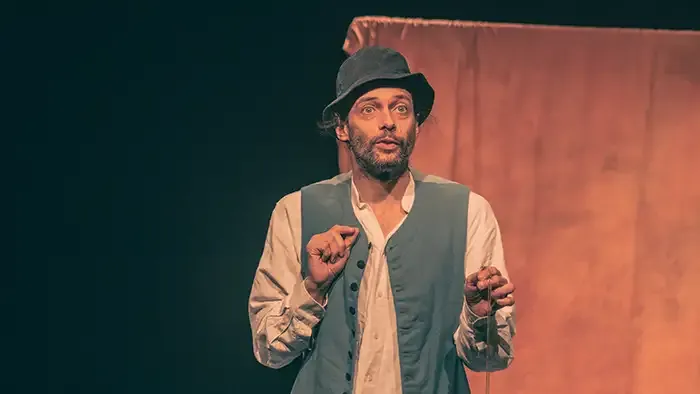 Les cinq comédiens interprètent tous les personnages de cette farce jubilatoire, endossant tour à tour des rôles d'hommes, de femmes, de servante, de jeune premier dans un rythme effréné. La mise en scène, dans la tradition du théâtre de tréteau, est truffée de clins d’œil contemporains pour souligner l’intemporalité de cette écriture qui n’a rien perdu de son génie.