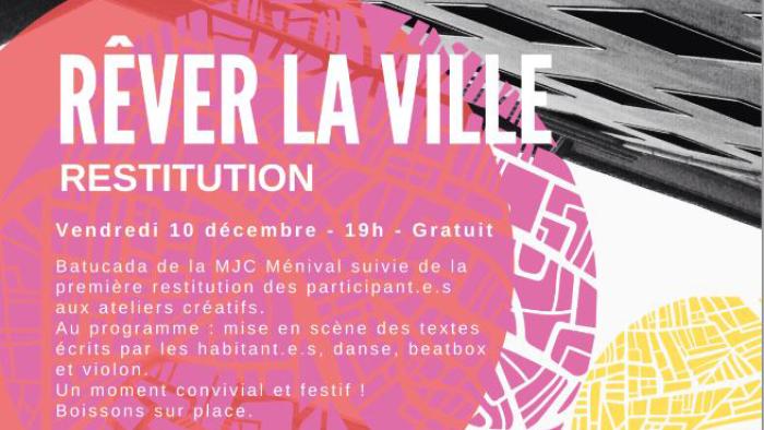Venez soutenir les participant.e.s aux ateliers créatifs "Rêver la Ville" lors de leur première restitution !