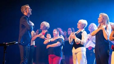 55 artistes chantant, dansant, vibrant sur des arrangements vocaux des chansons actuelles.